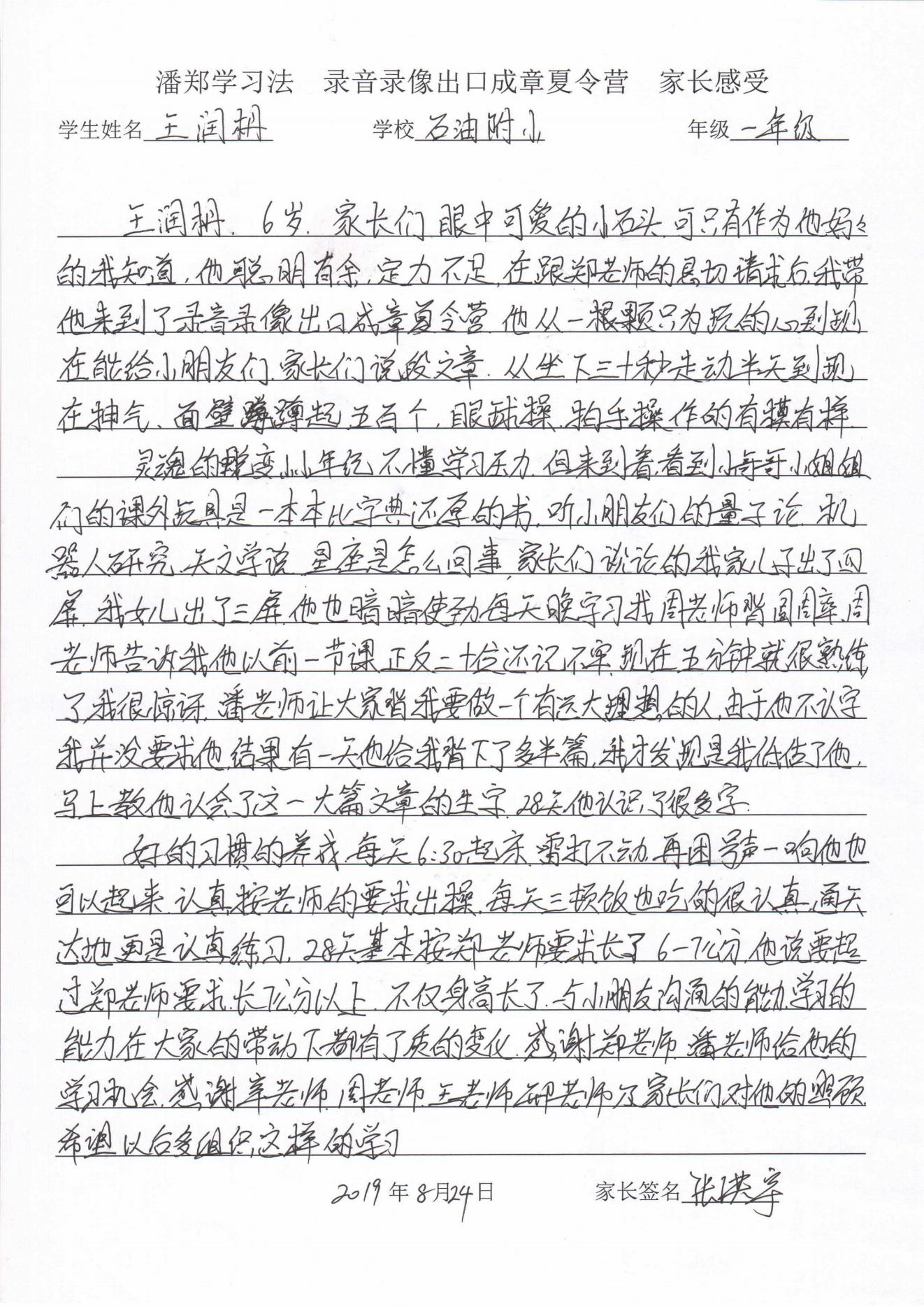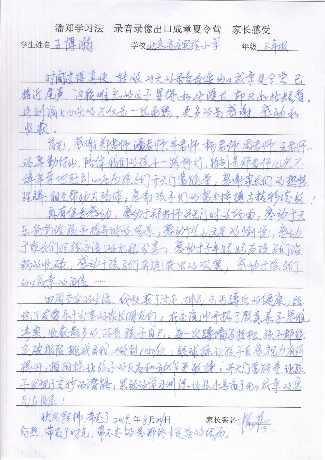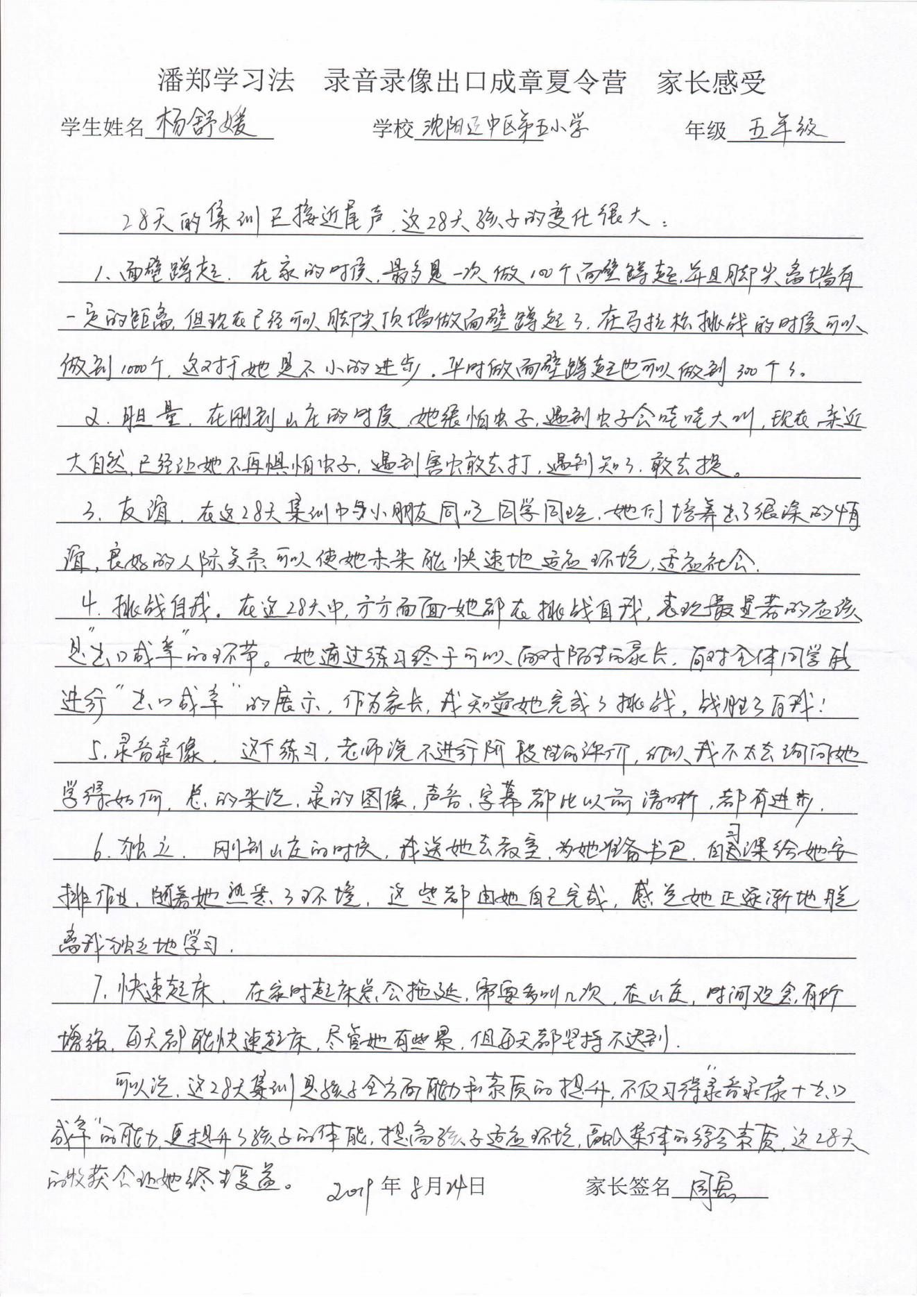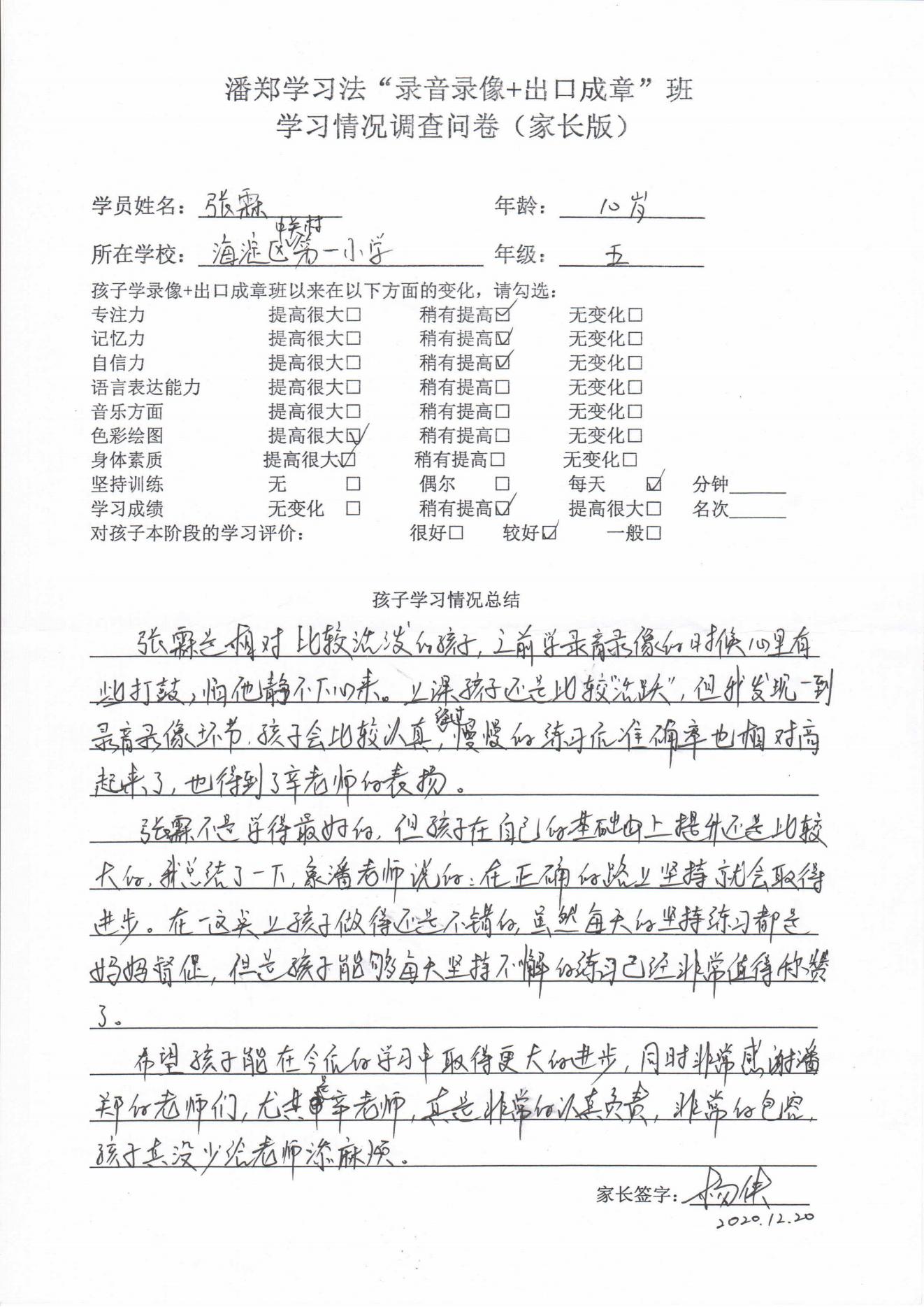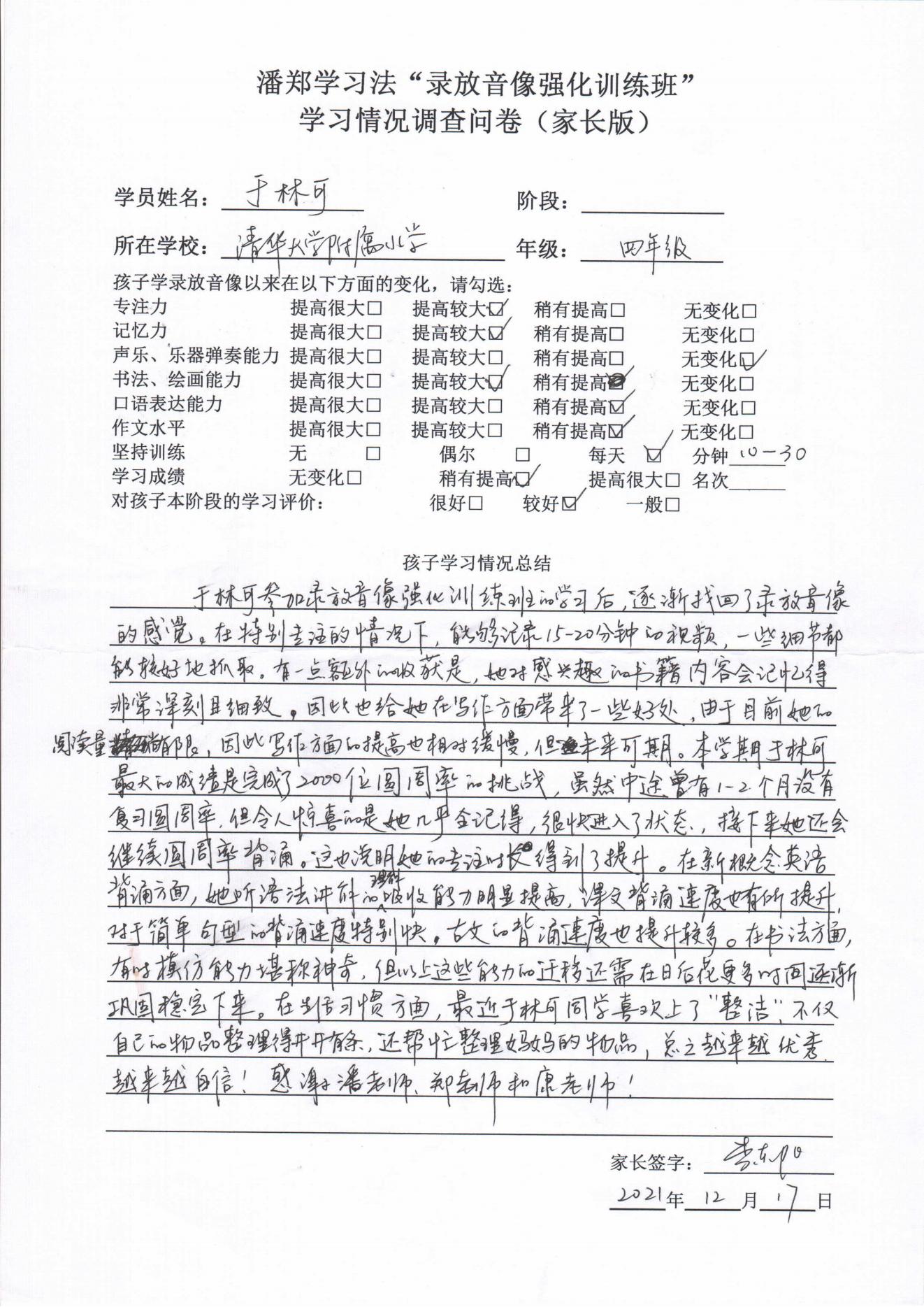 录放音像+出口成章家长反馈表