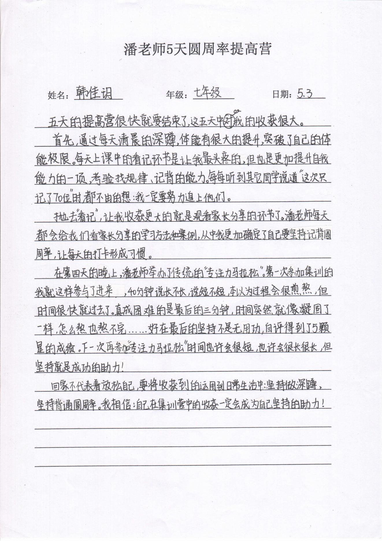 5天圆周率学员反馈