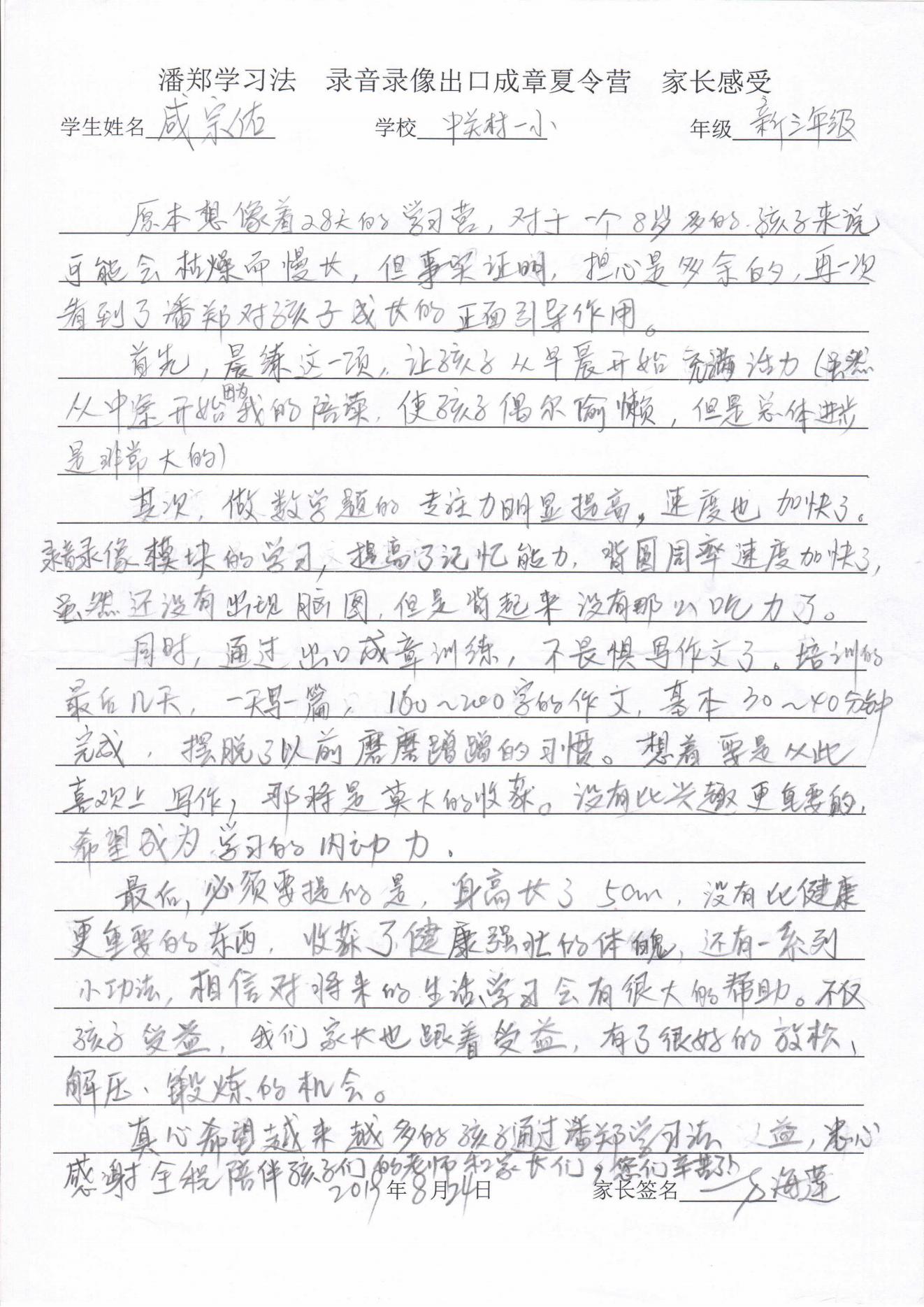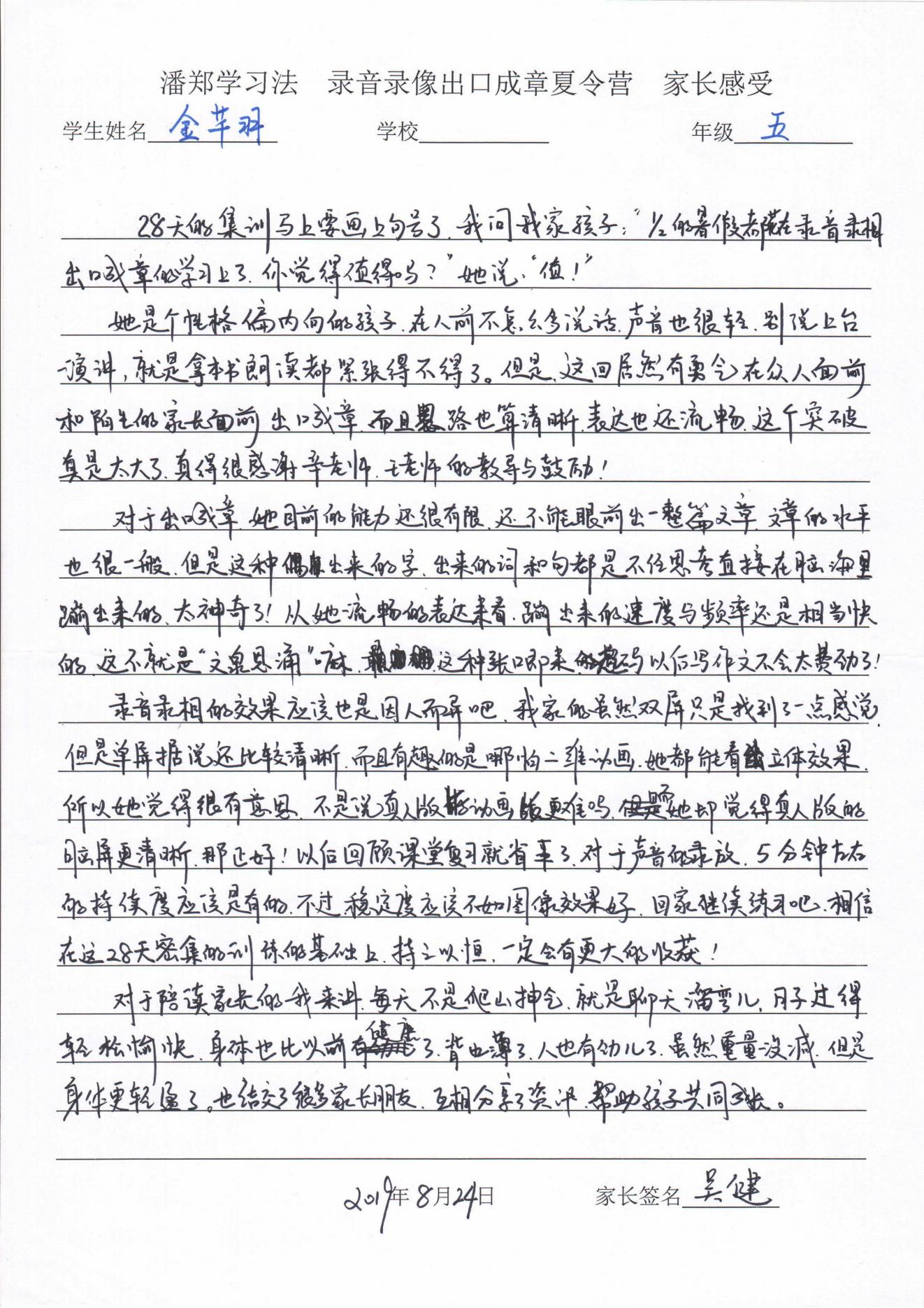 录放音像+出口成章家长反馈表
